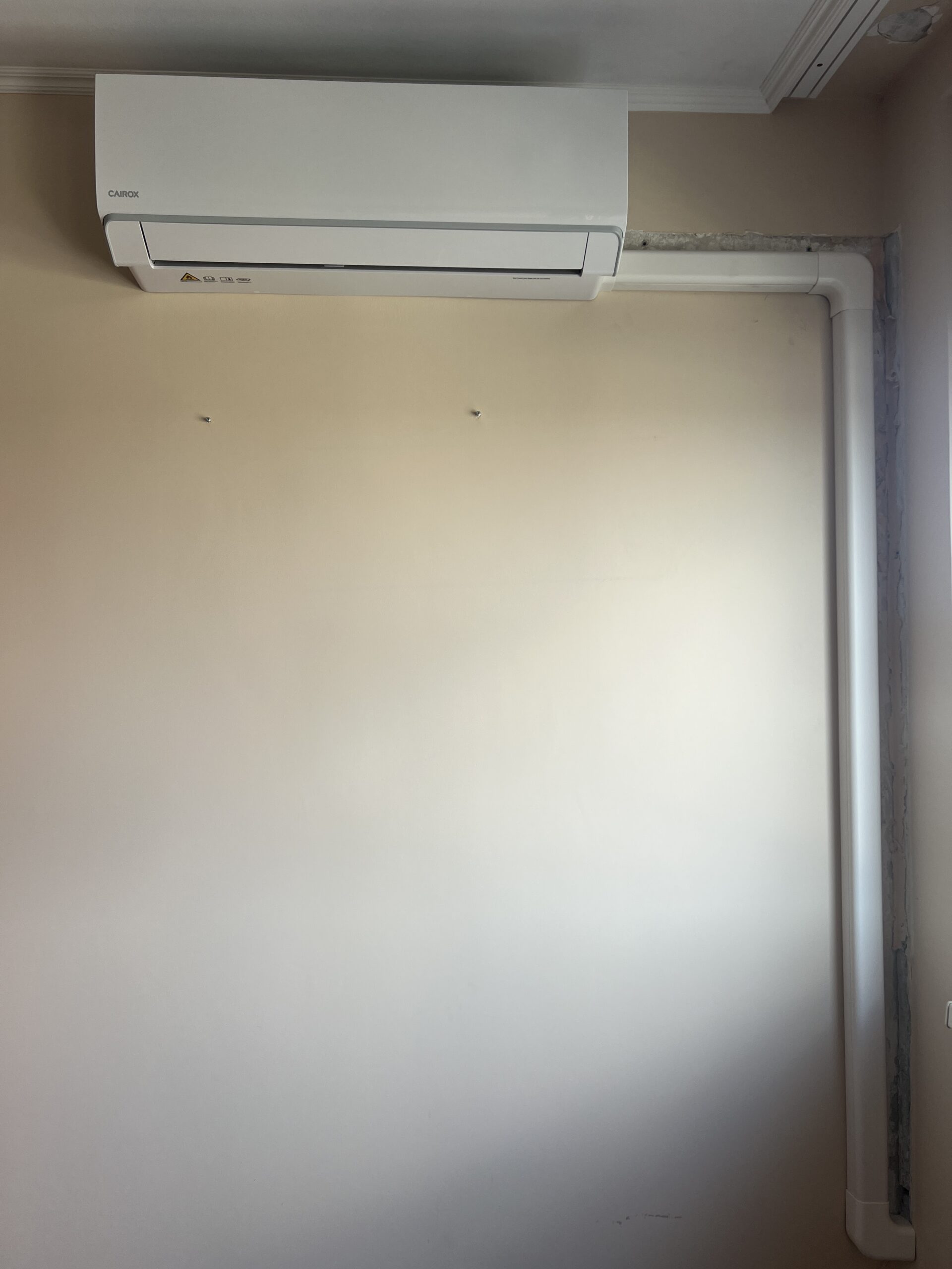 A régi klíma eltávolítása után természetesen maradtak kisebb esztétikai nyomok a falon. Ezek eltüntetéséről már a festő szakember gondoskodik majd, így a lakás hamarosan